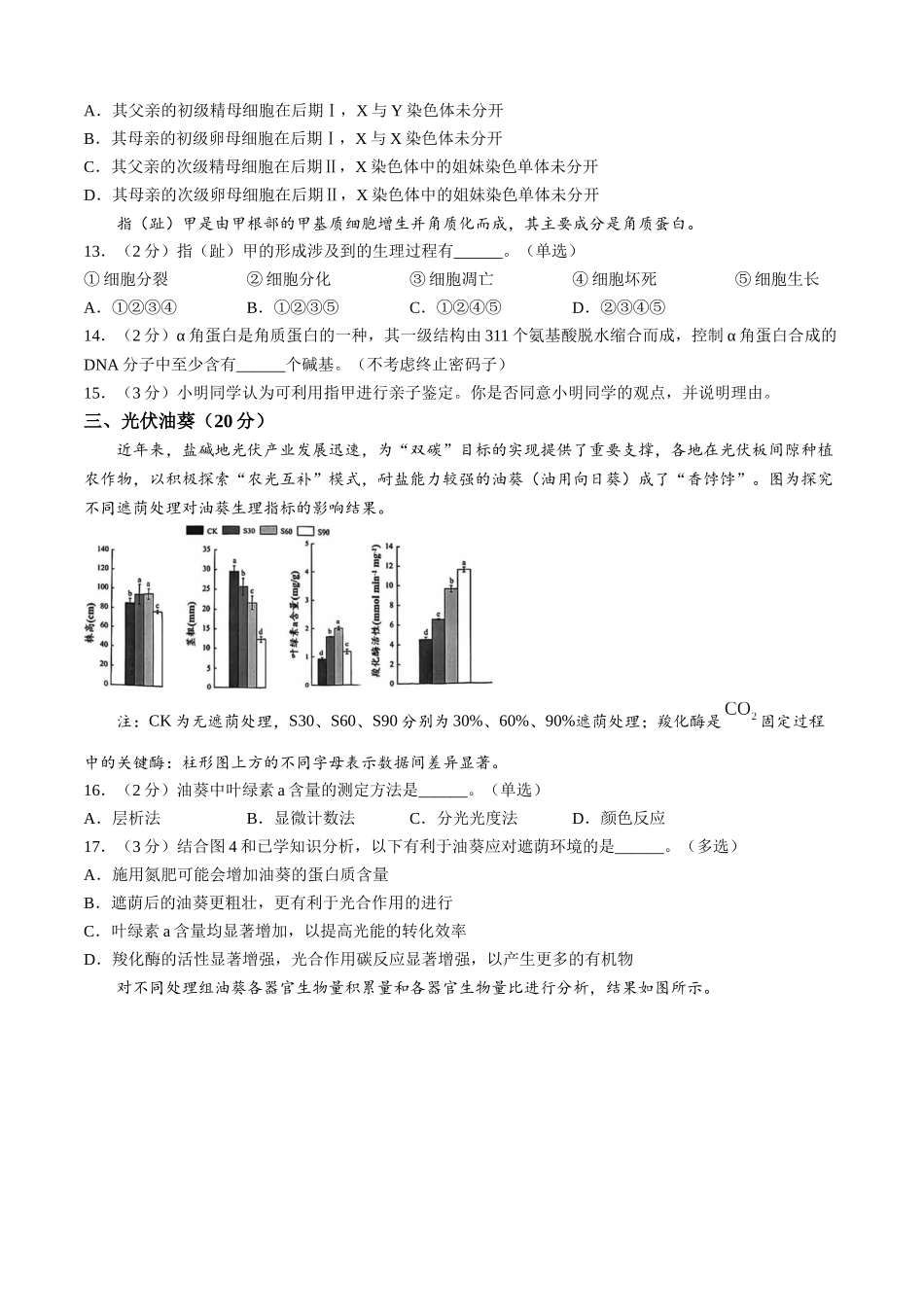 上海市奉贤区2024-2025学年高三上学期一模生物学试题(含答案).docx_第3页