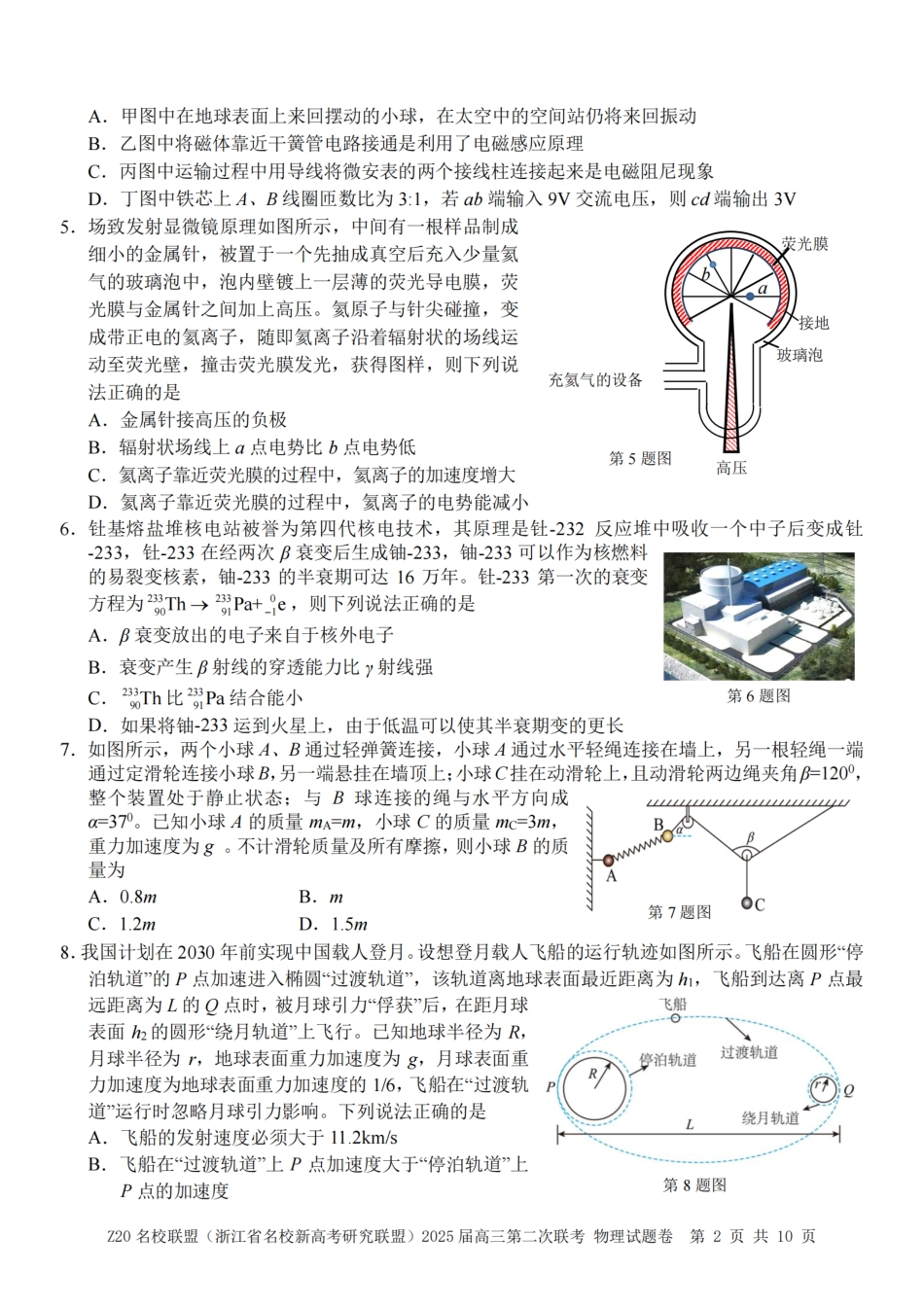浙江省Z20名校联盟(名校新高考研究联盟)2024-2025学年高三上学期第二次联考物理试题.pdf_第2页