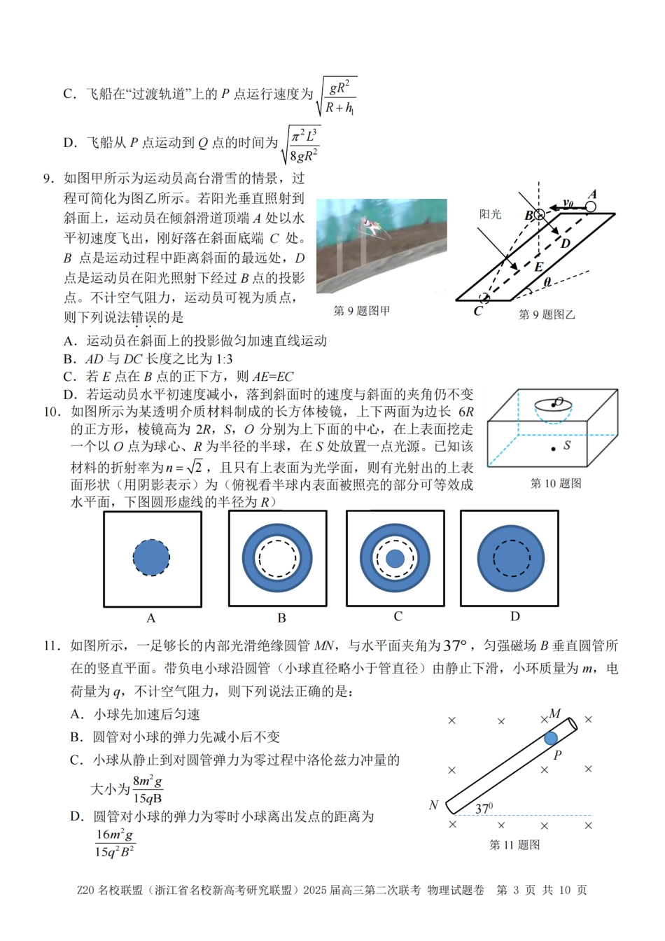 浙江省Z20名校联盟(名校新高考研究联盟)2024-2025学年高三上学期第二次联考物理试题.pdf_第3页