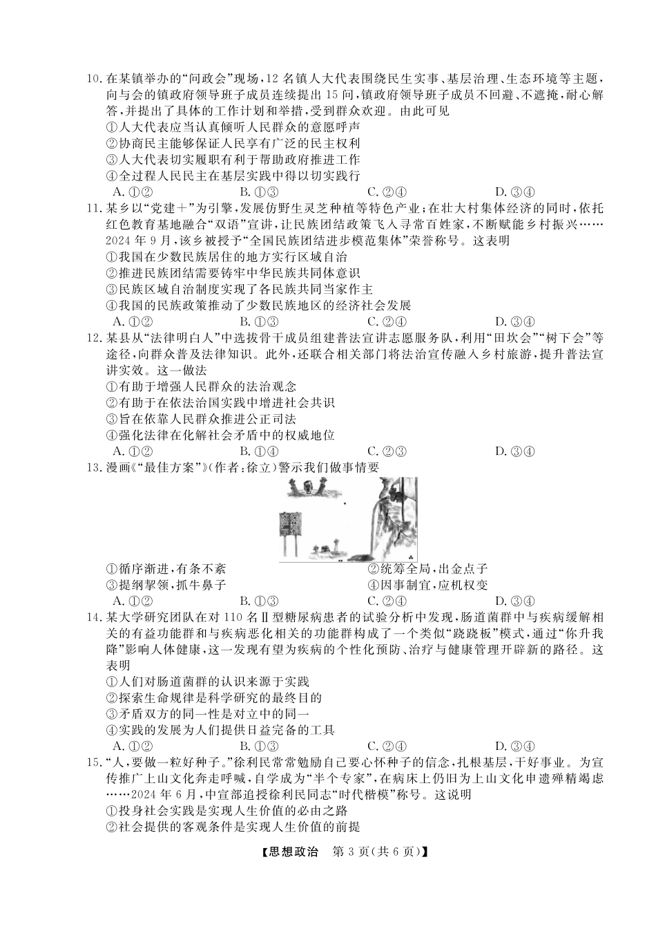 浙江省强基联盟2024年12月高三联考政治.pdf_第3页