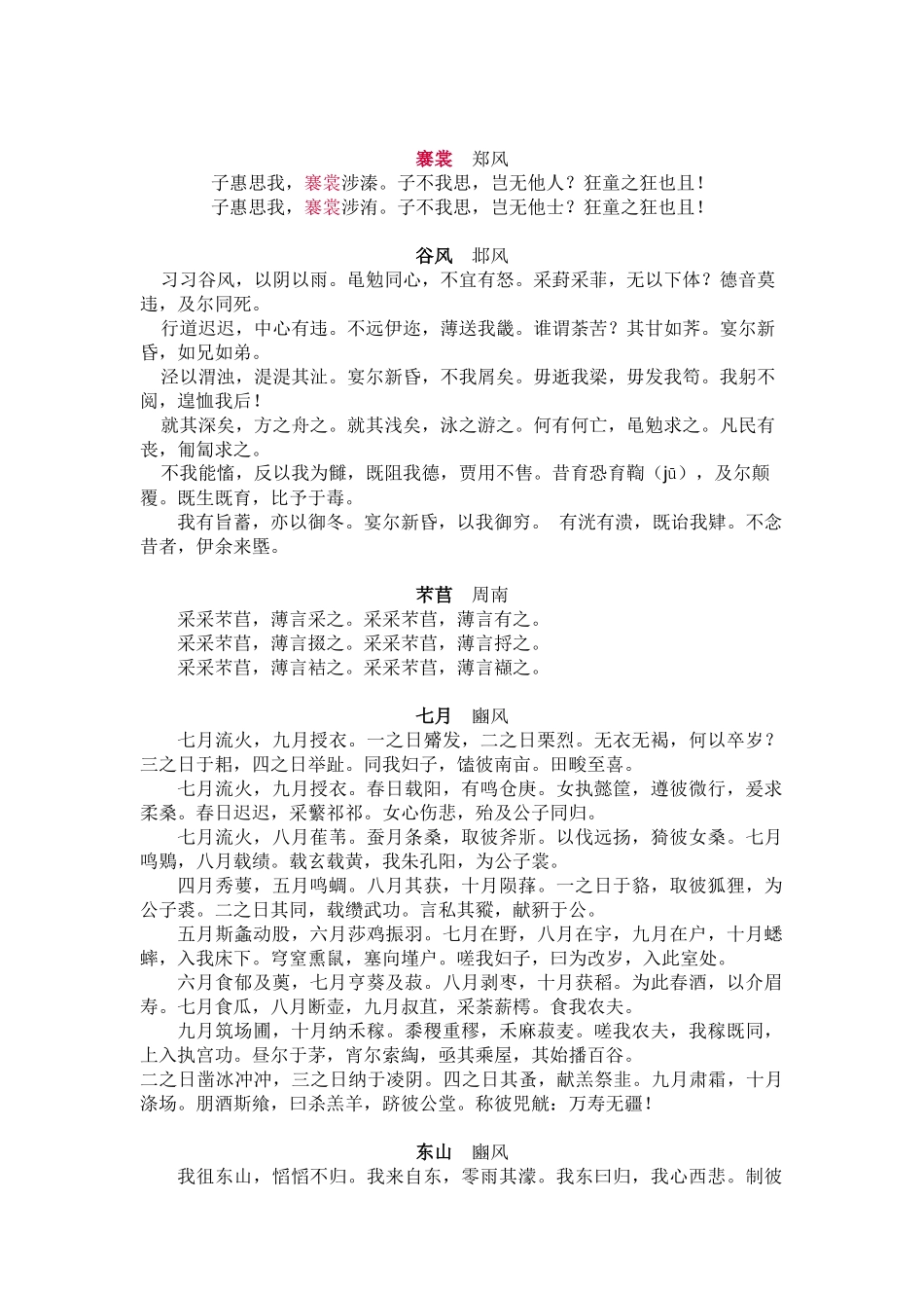 中国古代文学背诵与熟读作品先秦◎背诵部分关雎周南关关雎鸠,在河之洲。窈窕淑女,君子好逑。参差荇菜,左右流之。窈窕淑女,寤寐求之。求之不得,寤寐思服。悠哉悠哉,辗转反侧。参差荇菜,左右采之。窈窕淑女...