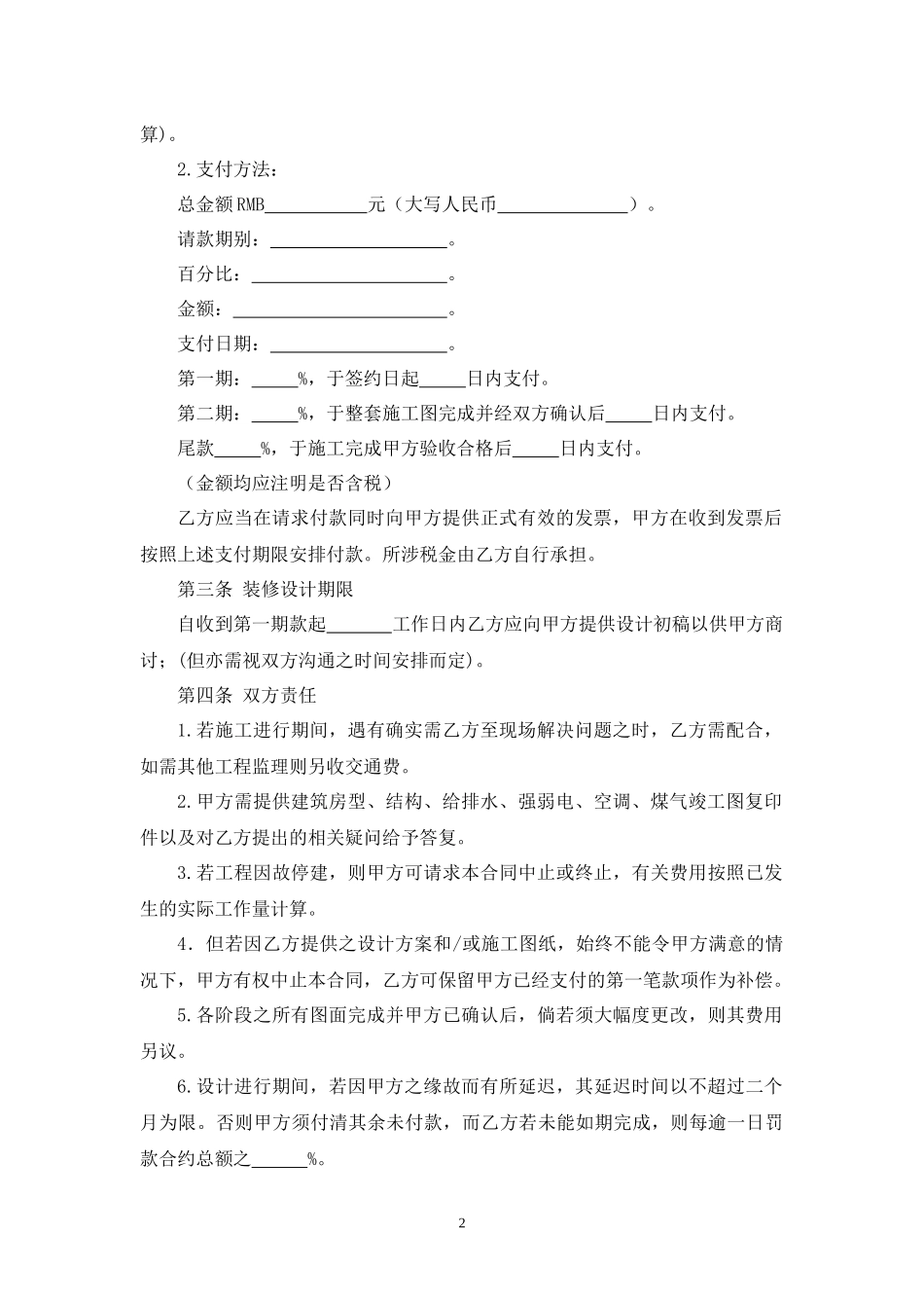 室内装修设计合同委托方(以下称甲方):公司住所:法定代表人:统一社会信用代码:联系方式:承接方(以下称乙方):公司住所:法定代表人:统一社会信用代码:联系方式:根据《中华人民共和国合同法》、《中华...