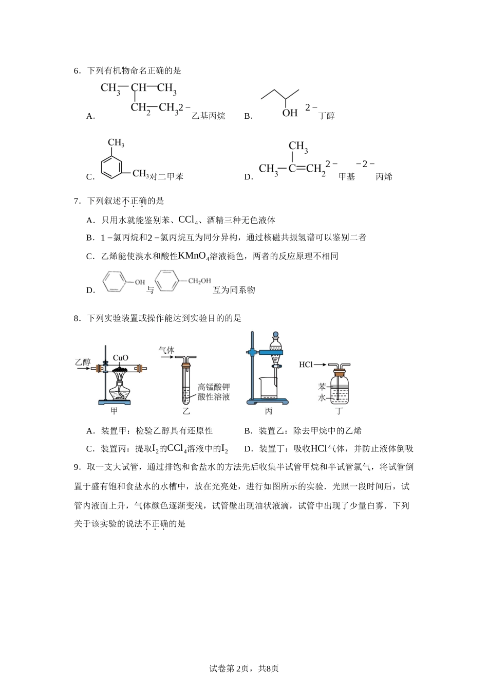 江苏省扬州市新华中学2023-2024学年高二下学期4月期中考试化学试题含答案.docx_第2页