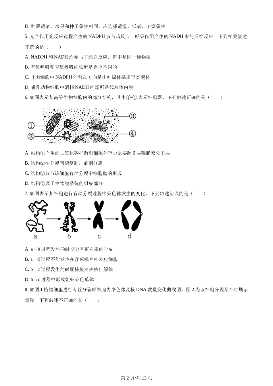 天津市和平区耀华中学2023-2024学年高一上学期期末生物试题含答案.docx_第2页