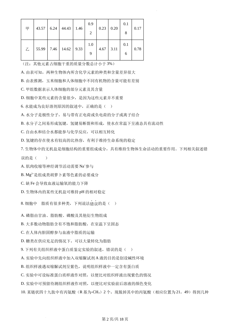 吉林省长春市东北师大附中2023-2024学年高一上学期期末生物试题含答案.docx_第2页