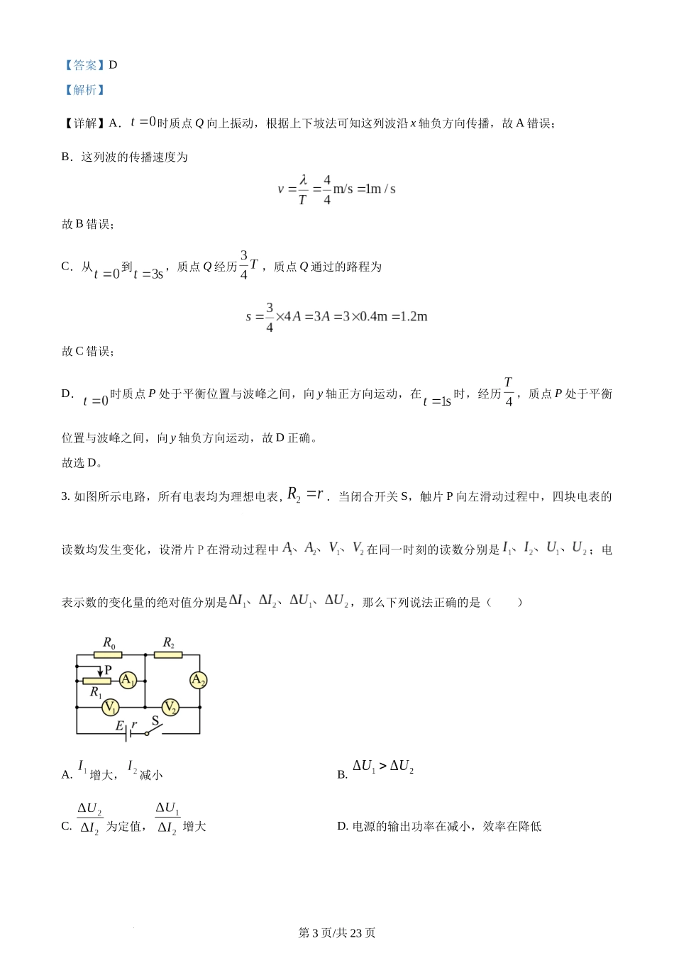 精品解析:福建省厦门外国语学校2023-2024学年高二上学期1月阶段性训练物理试题(解析版)含答案.docx_第3页