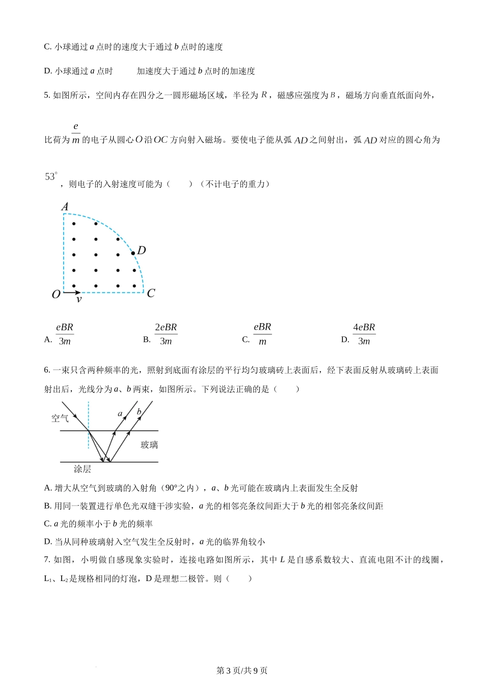 精品解析:湖南省长沙市雅礼教育集团2023-2024学年高二下学期期末考试物理试卷(原卷版)含答案 (1).docx_第3页