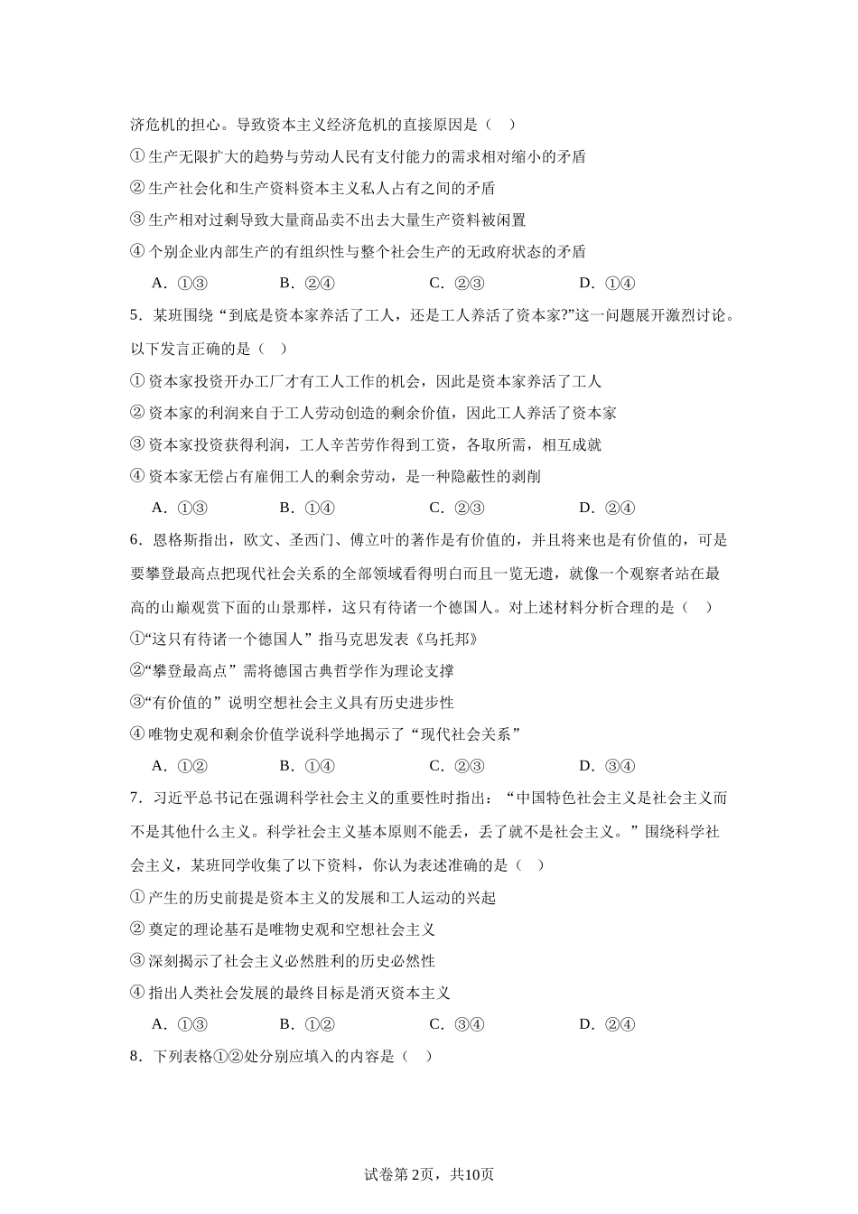 陕西省汉中市2023-2024学年高一上学期期中校际联考政治试卷含答案.docx_第2页