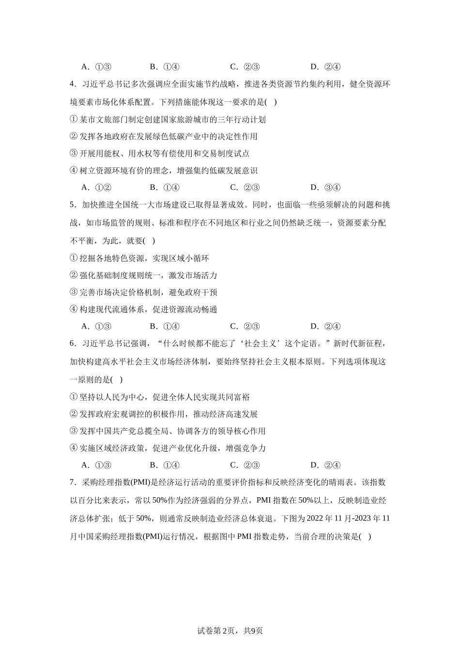 山东省德州市2023-2024学年高一上学期期末考试政治试题含答案.docx_第2页