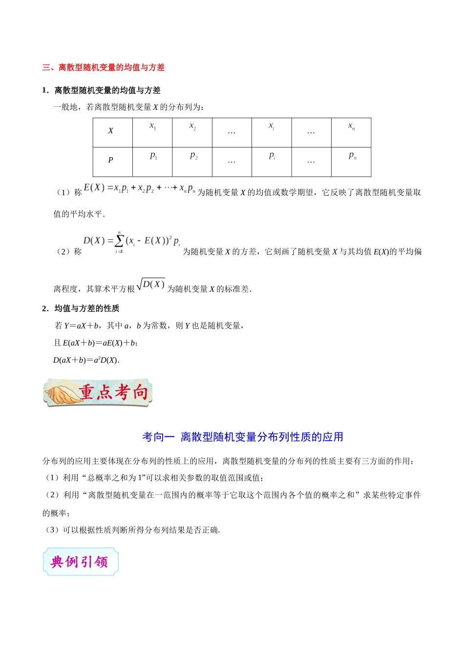 专题53离散型随机变量及其分布列、均值与方差(1)理解取有限个值的离散型随机变量及其分布列的概念,了解分布列对于刻画随机现象的重要性.(2)理解超几何分布及其导出过程,并能进行简单的应用.(3)理解取有限...