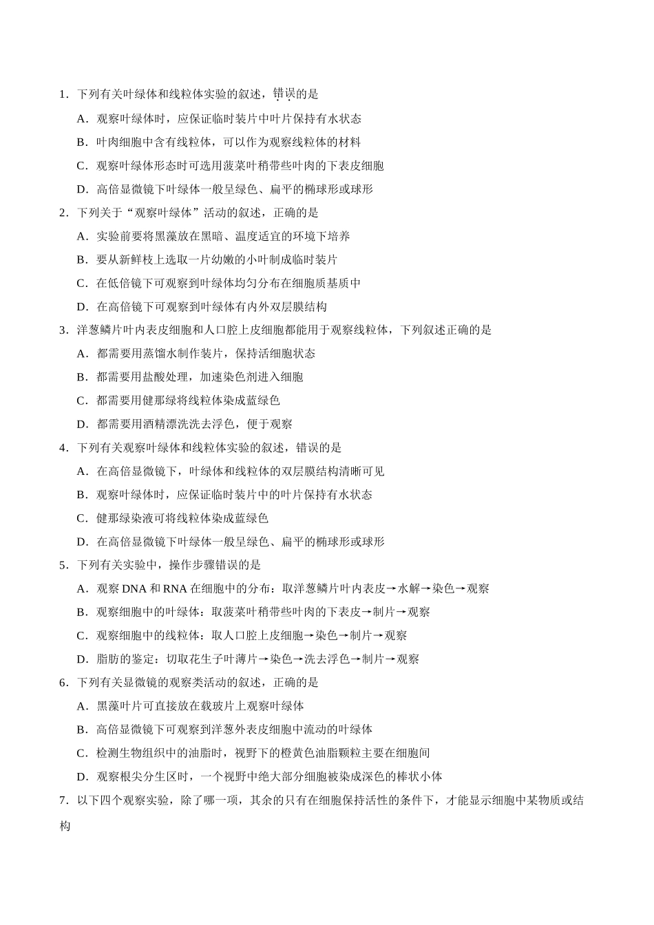 2025版·《考点一遍过》高考生物_考点12 用高倍显微镜观察叶绿体和线粒体.doc_第2页