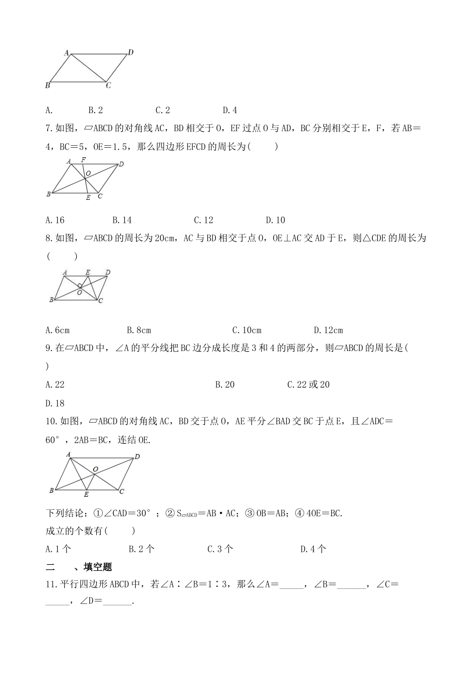 【八年级下册数学浙教版】练习题-4.2 平行四边形的性质.docx_第2页