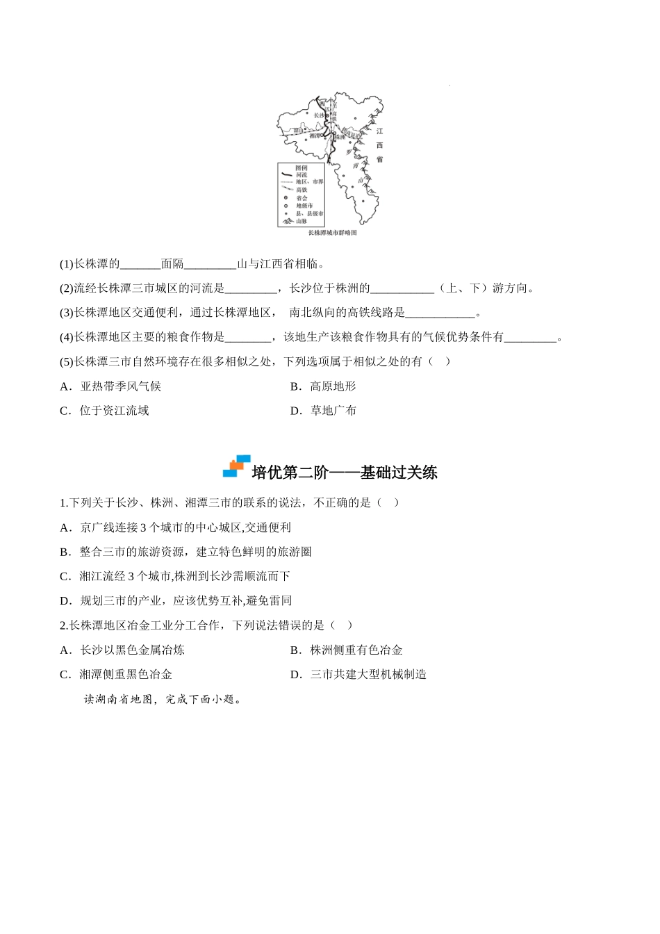 【八年级下册地理湘教版】7.5长株潭城市群内部的差异与联系-课后培优分级练.docx_第2页