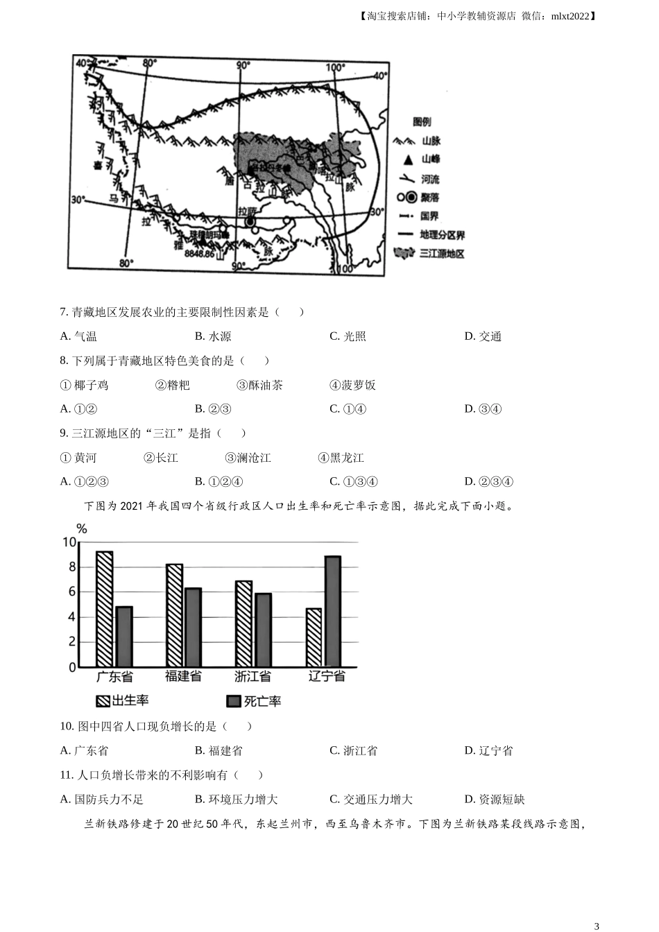 精品解析:2023年四川省甘孜州中考地理真题(原卷版).docx_第3页