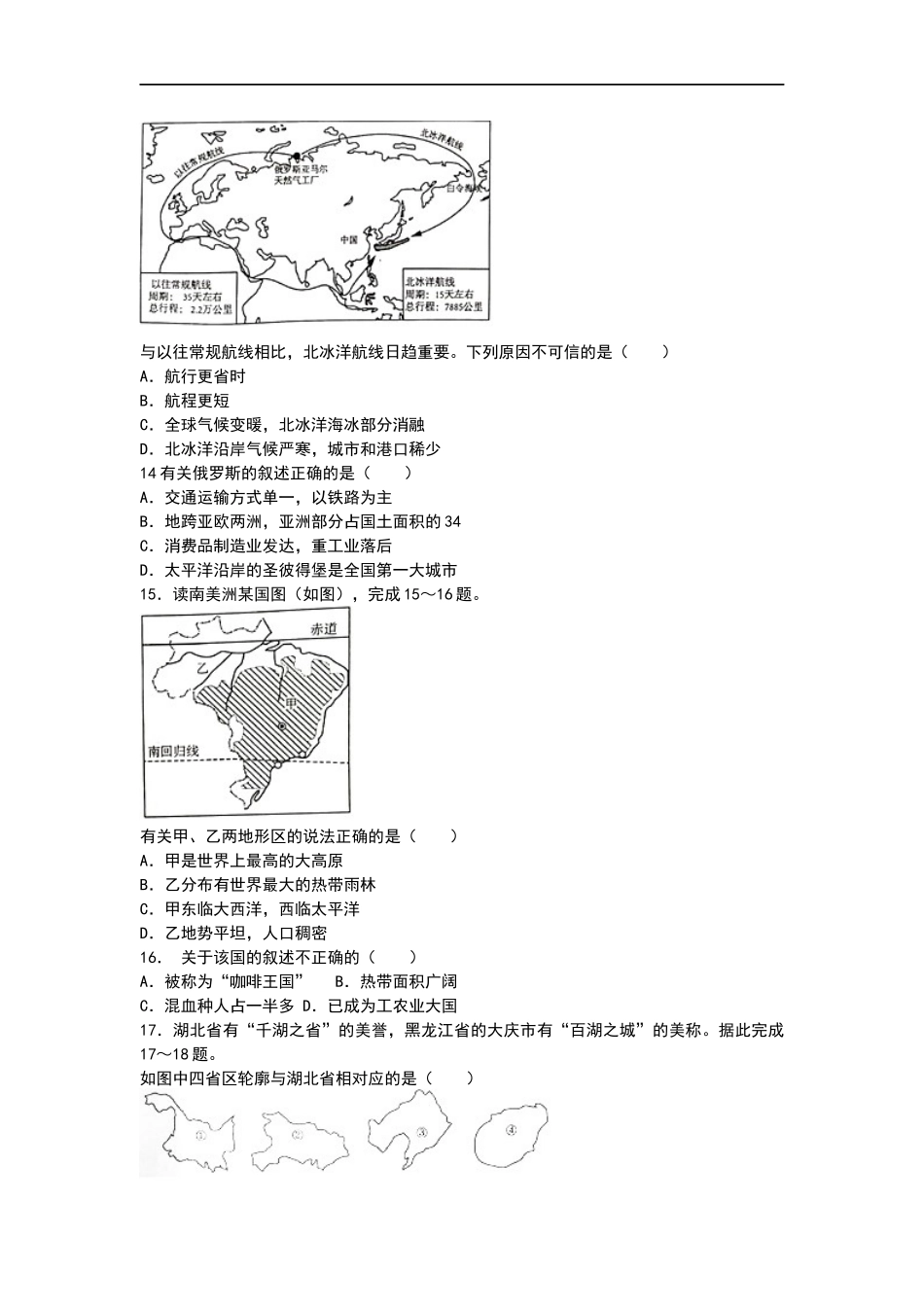 2019年湖南省邵阳市中考地理试题(WORD版,含答案).docx_第3页