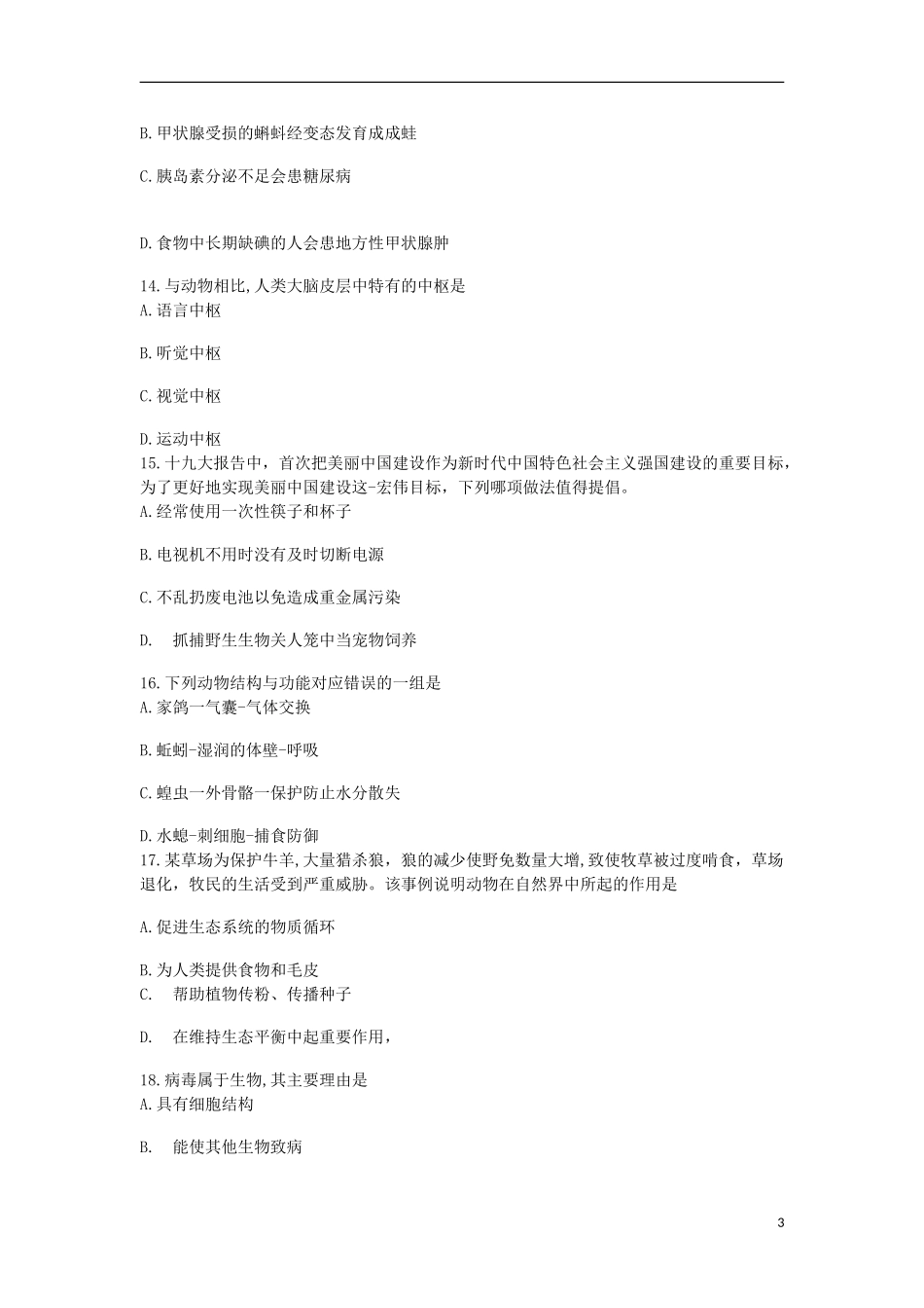 安徽省芜湖市2018年中考生物真题试题(含答案).doc_第3页