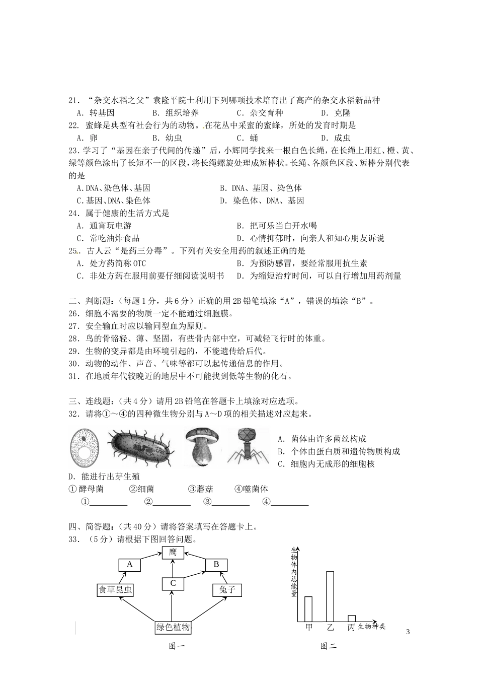 湖南省湘潭市2016年中考生物真题试题(A卷,含答案).doc_第3页