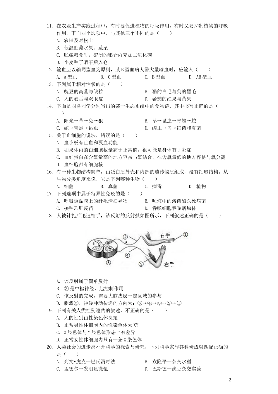 四川省广元市2019年中考生物真题试题(含解析).docx_第2页