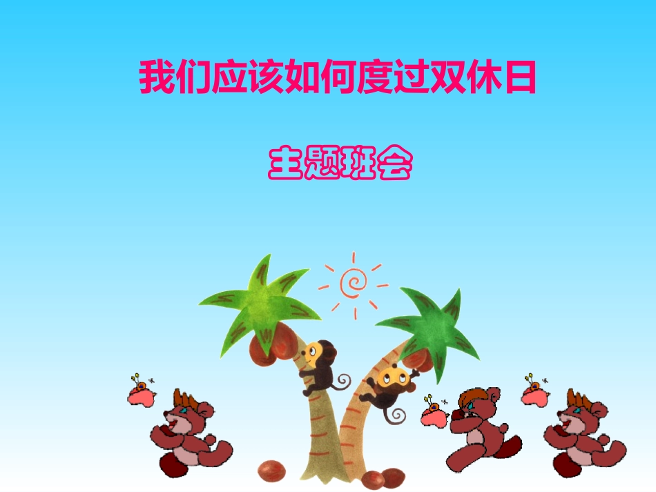 我们应该如何度过双休日主题班会我们应该如何度过双休日一、活动目的:学会自己安排双休日活动,过一个真正松弛身心、满足爱好、获得成长、自由而有意义的双休日。二、重点难点:重点:学会自己安排双休日活动难...
