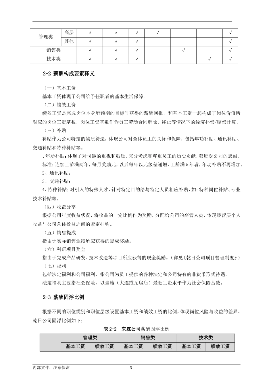 第一章总则-目的为建立具有兼顾内部公平性和市场竞争性的薪酬制度,努力实现员工在薪酬分配上的“责任与利益一致、能力与价值一致、风险与回报一致、业绩与收益一致”的目标,构建有效的激励机制,促进有限公司(...