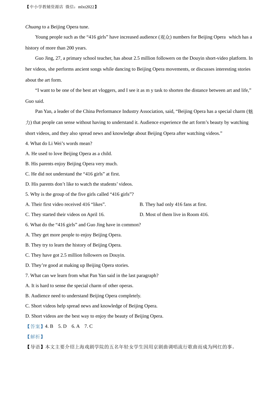 【中小学教辅资源店微信:mlxt2022】2022年烟台市初中学业水平考试英语试题注意事项:1.本试卷共8页,满分90分;考试时间100分钟。考试结束后,请将本试卷和答题卡一并交回。2.答题前,务必用0.5毫米黑色签字笔将...