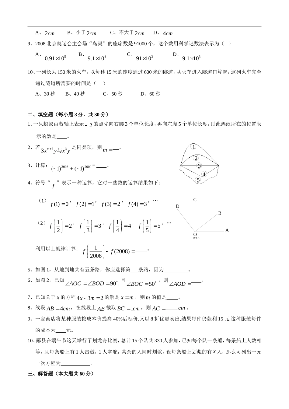 期末目标检测数学试卷(1)及答案.doc_第2页