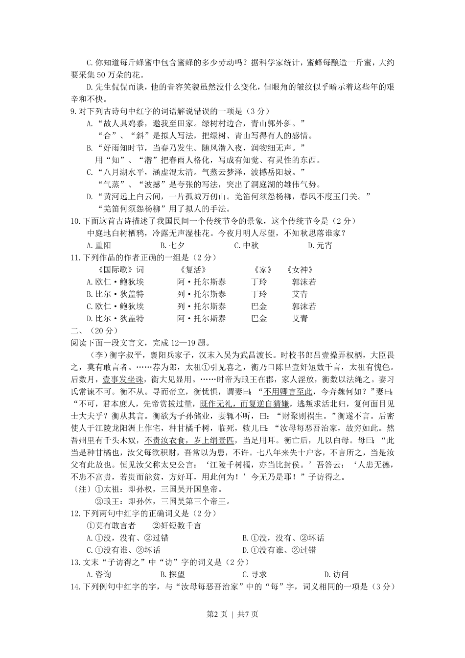 第1页|共7页1993年安徽高考语文真题及答案一、(30分)1.下列词语中红字的字读音全都正确的一组是(2分)A.引擎(qíng)联袂(mèi)泊位(pò)恬不知耻(tián)B.羞赧(nǎn)果脯(pǔ)澎湃(pài)咬文嚼...