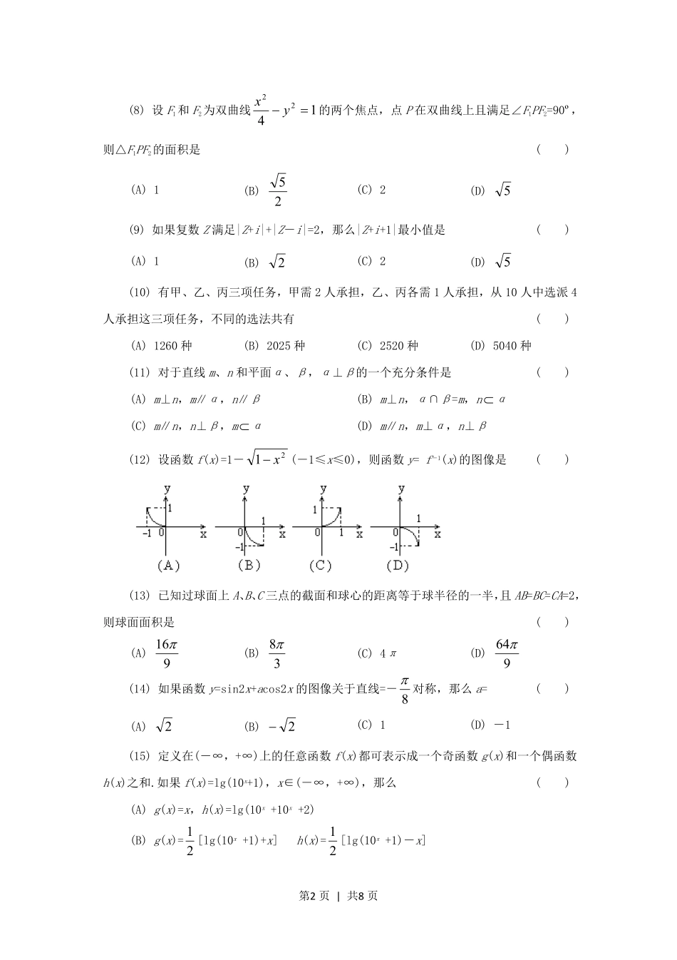1994年西藏高考文科数学真题及答案.pdf_第2页