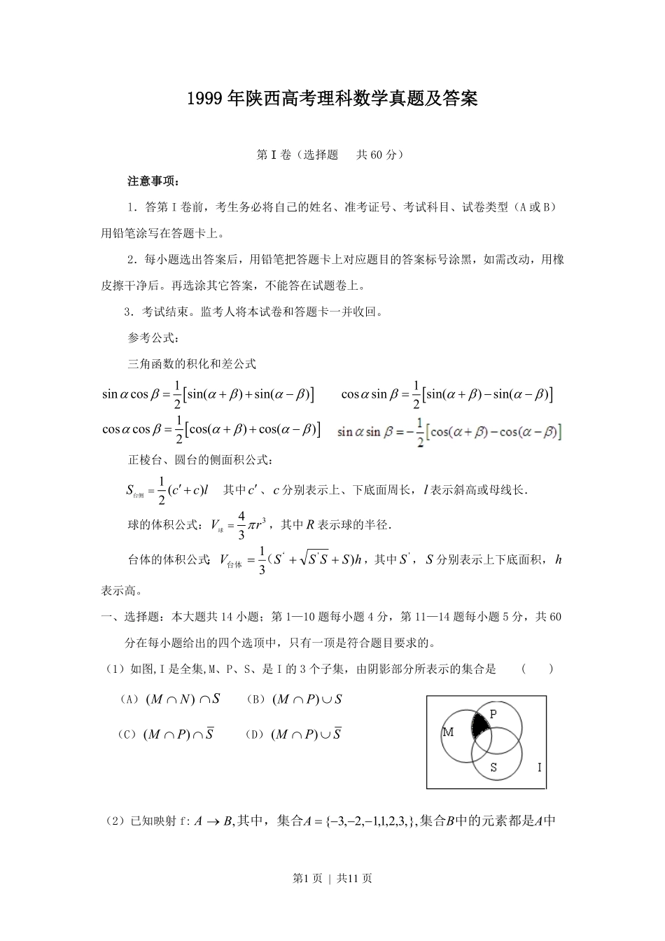 1999年陕西高考理科数学真题及答案.pdf_第1页