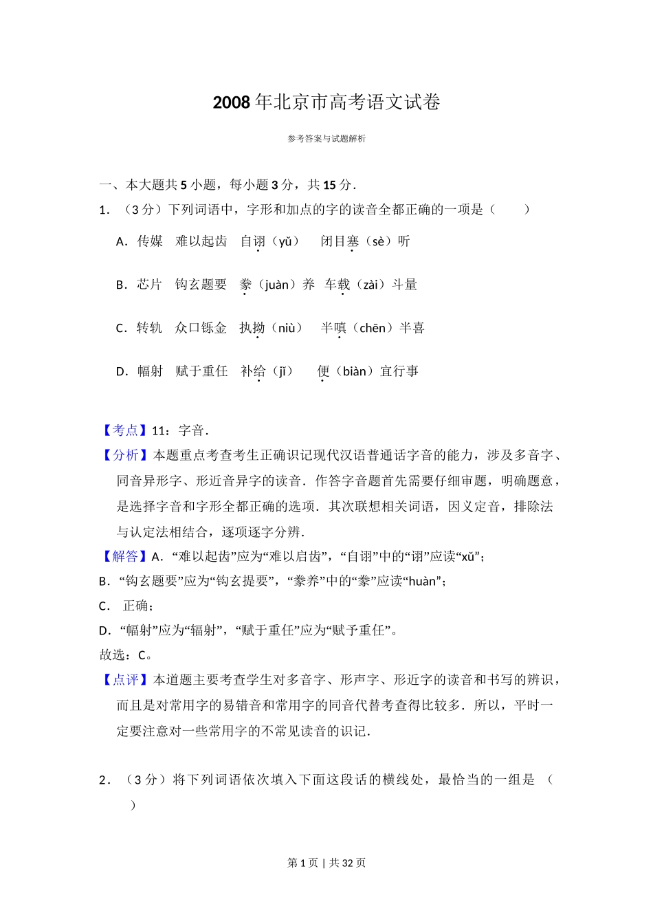 2008年高考语文试卷(北京)(解析卷).doc_第2页
