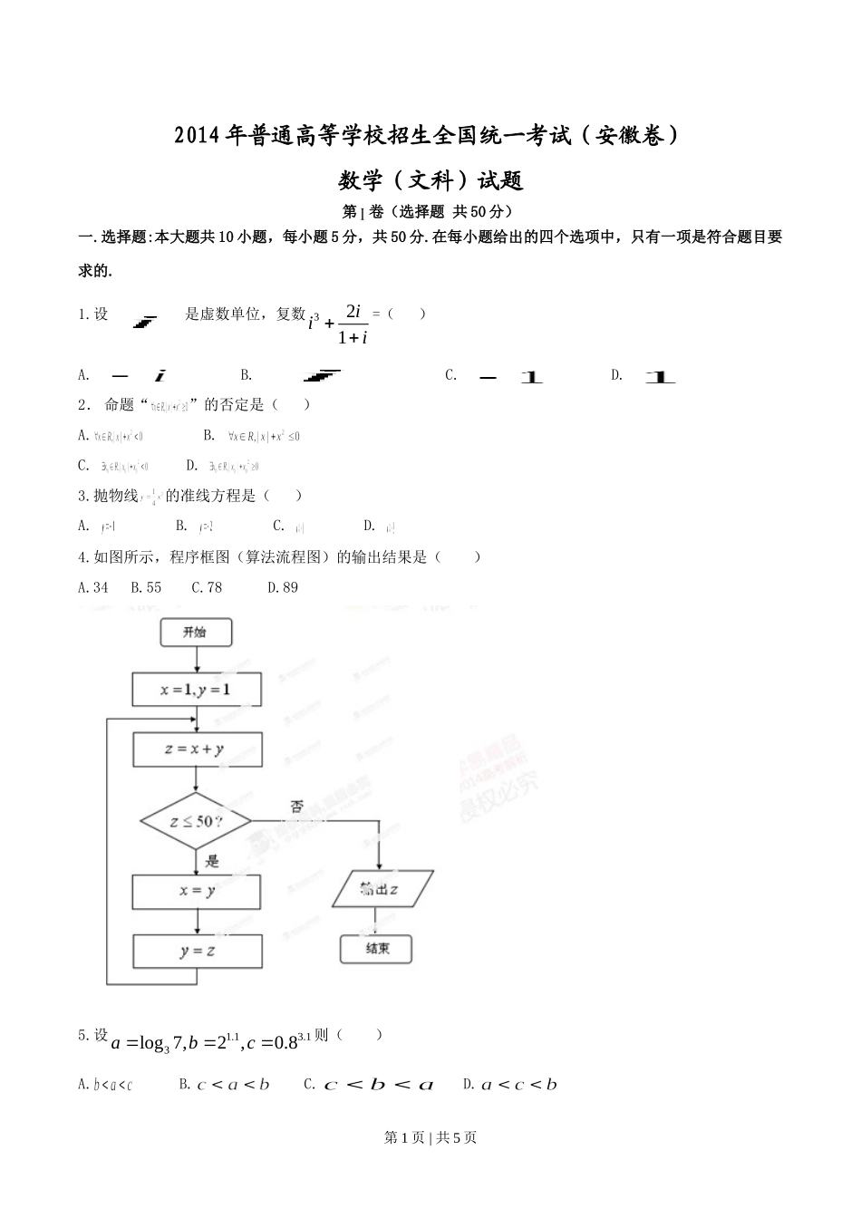 2014年高考数学试卷(文)(安徽)(空白卷).doc_第1页