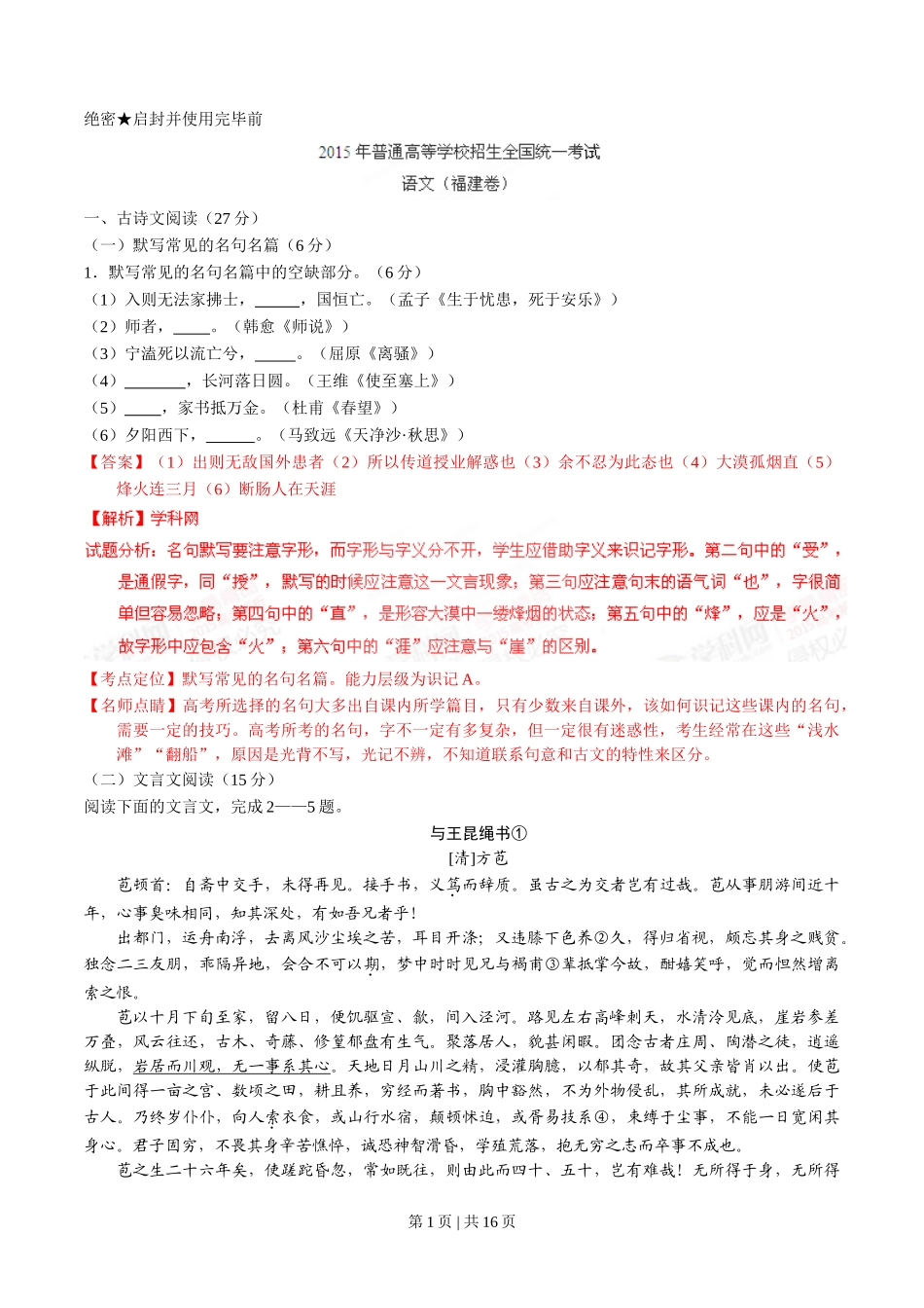 2015年高考语文试卷(福建)(解析卷).doc_第1页