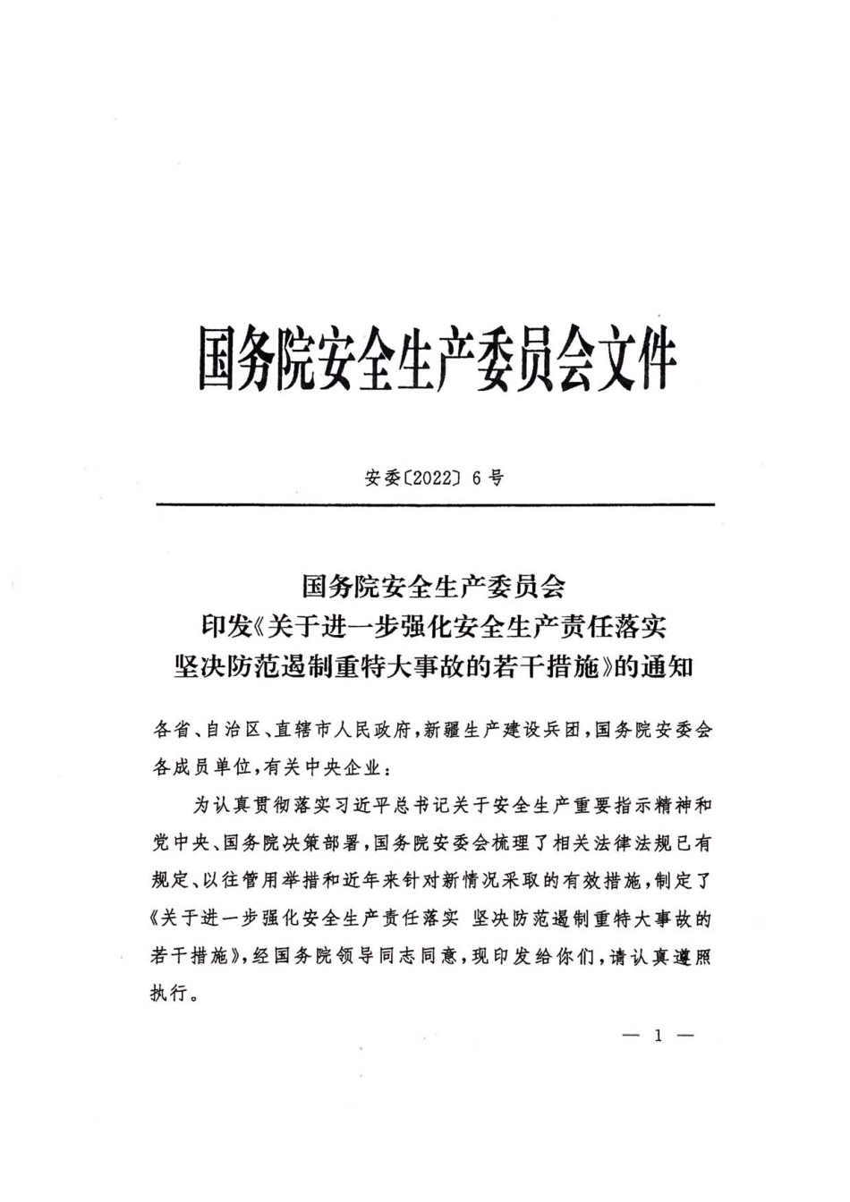 《国务院安委会关于进一步强化安全生产责任落实坚决防范遏制重特大事故的若干措施》(安委〔2022〕6号).pdf_第1页