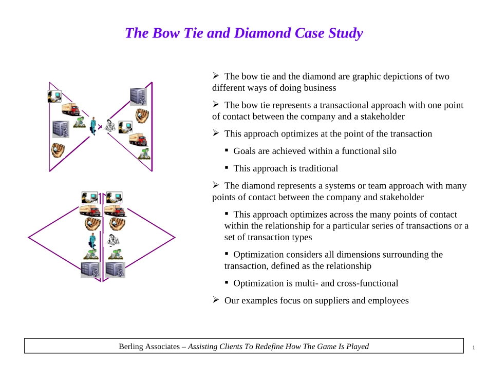 1BerlingAssociates–AssistingClientsToRedefineHowTheGameIsPlayedTheBowTieandDiamondCaseStudyThebowtieandthediamondaregraphicdepictionsoftwodifferentwaysofdoingbusinessThebowtierepresentsatransa...