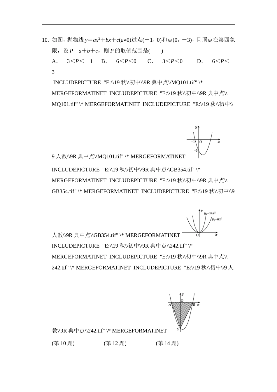 第二十二章达标测试卷一、选择题(每题3分,共30分)1.下列函数是二次函数的是()A.y=3x2+9B.y=mx2+2x-3C.y=2x2+-2D.y=2.抛物线y=2(x-3)2+4的顶点坐标是()A.(3,4)B.(-3,4)C.(3,-4)D.(2,...