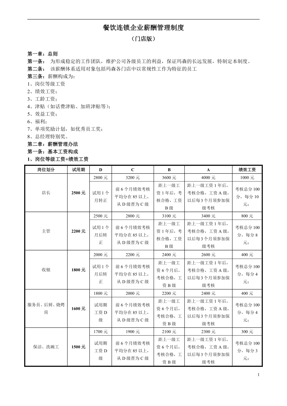 餐饮连锁企业薪酬制度(门店)-14d16377a31614791711cc7931b765ce04087a05.pdf_第1页