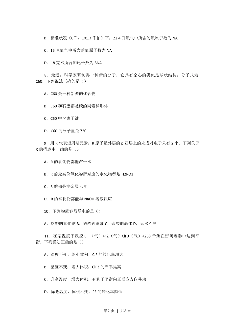 第1页|共8页1992年云南高考化学真题及答案一、选择题(每小题1分,共5分.每小题只有一个选项符合题意)1.在炼铁、制玻璃、制水泥三种工业生产中,都需要的原料是()A.纯碱B.石灰石C.石英D.粘土2.下列情况...