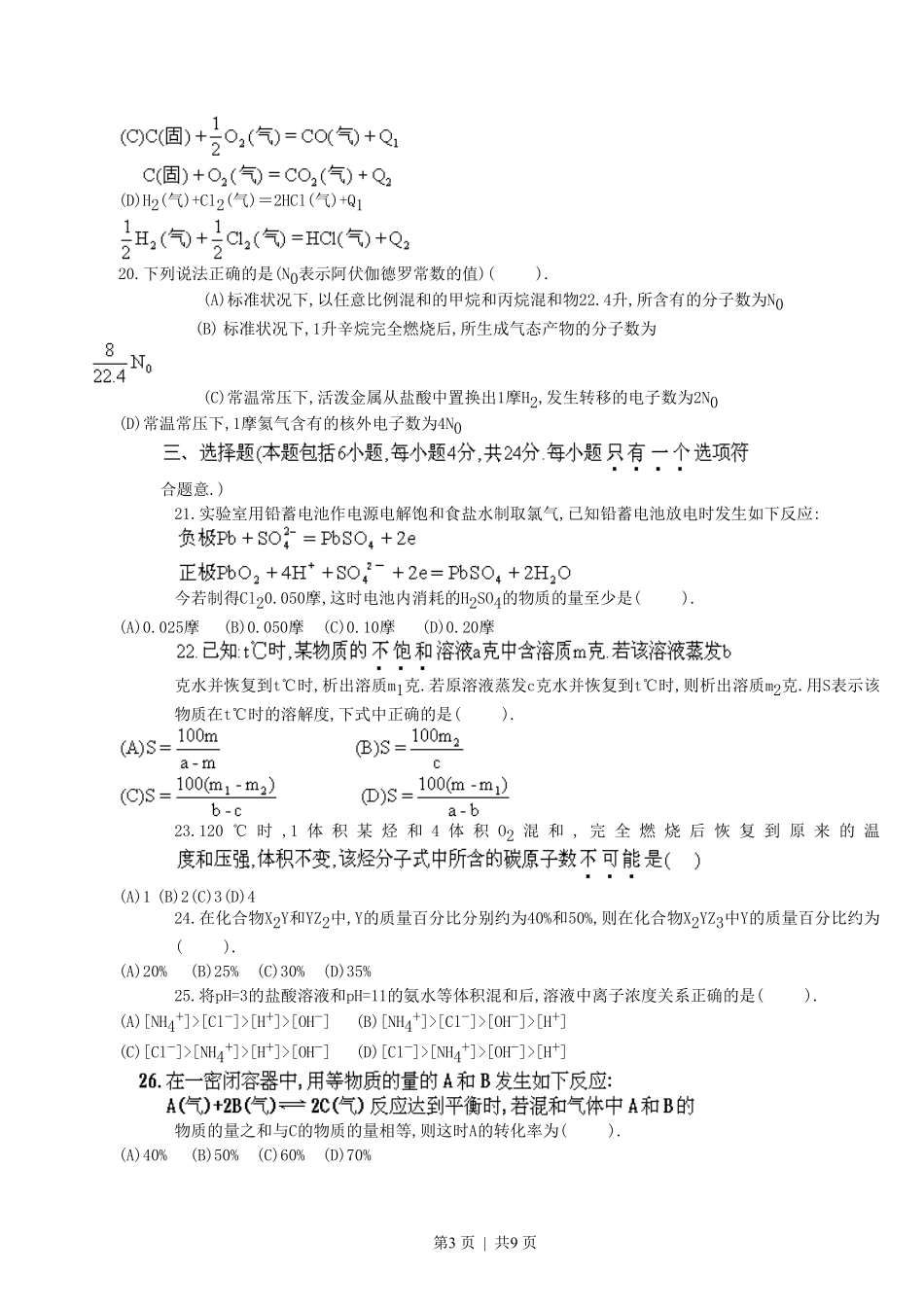 1996年黑龙江高考化学真题及答案.pdf_第3页