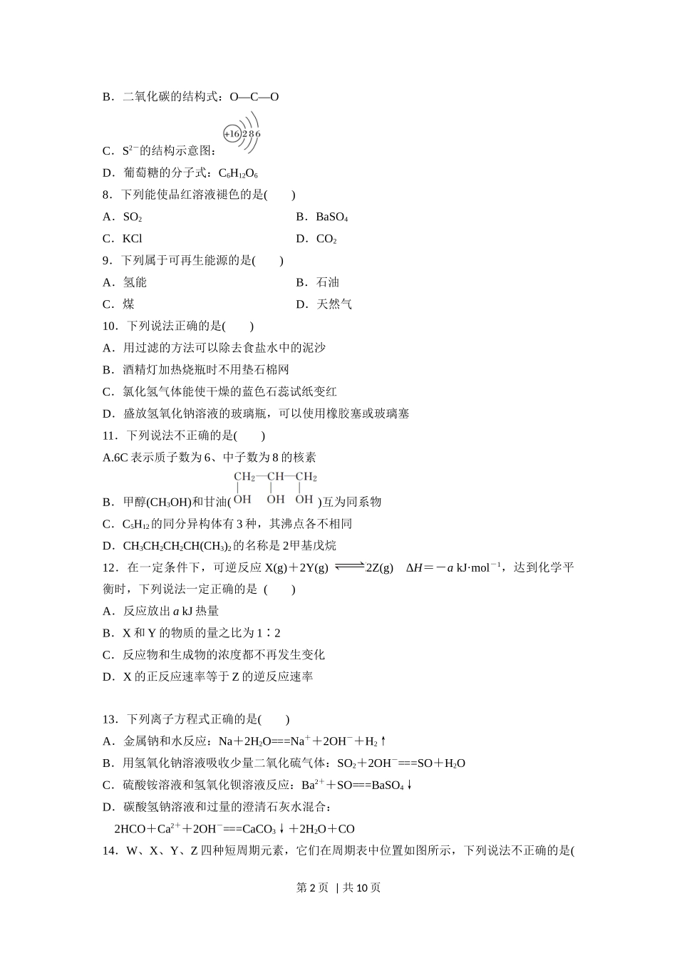 2016年高考化学试卷(浙江)【10月】(空白卷).docx_第2页