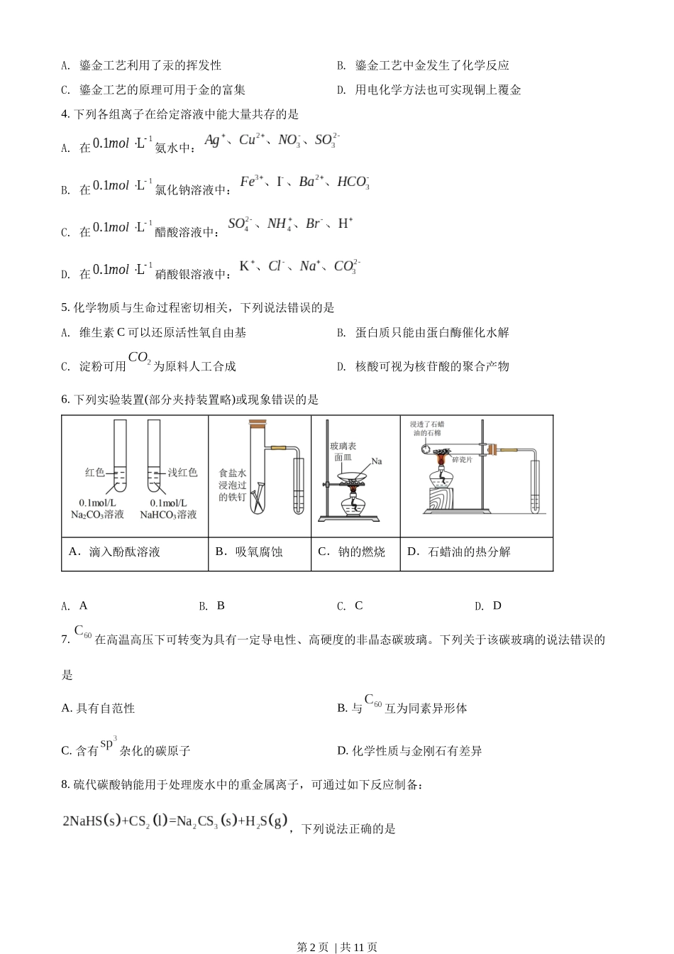 2022年高考化学试卷(湖北)(空白卷).docx_第2页