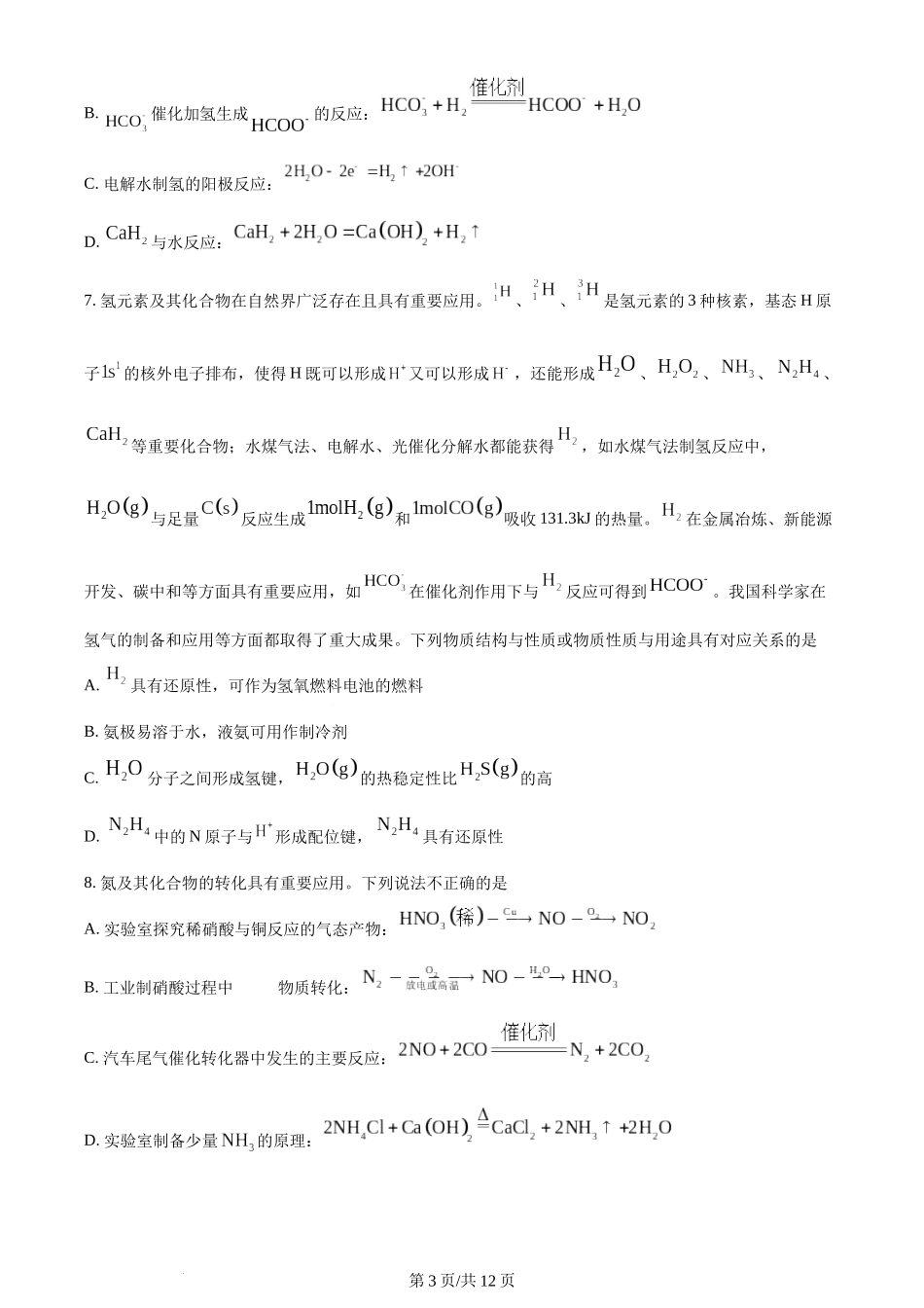 2023年高考化学试卷(江苏)(空白卷).docx_第3页