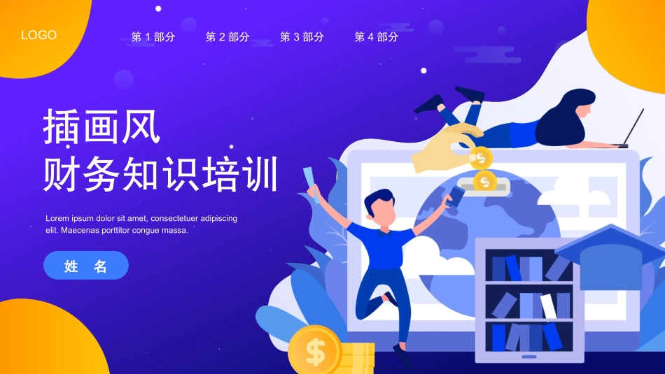 插画风财务知识培训Loremipsumdolorsitamet,consectetueradipiscingelit.Maecenasporttitorconguemassa.姓名第1部分第2部分第3部分第4部分LOGO第1部分第2部分第3部分第4部分LOGO01.资产负债表02.利润表03.现金流...