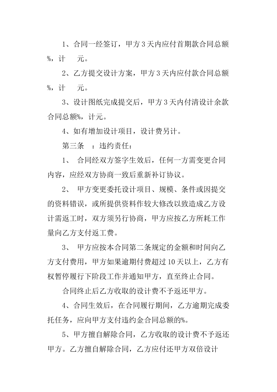 最新室内设计合同范本篇一:委托方(甲方):设计方(乙方):甲乙双方经友好协商,甲方委托乙方进行室内装饰工程设计。为保证工作顺利进行,双方特签订本合同供共同遵守执行。第一条:工程概况一、工程地点:二、设...