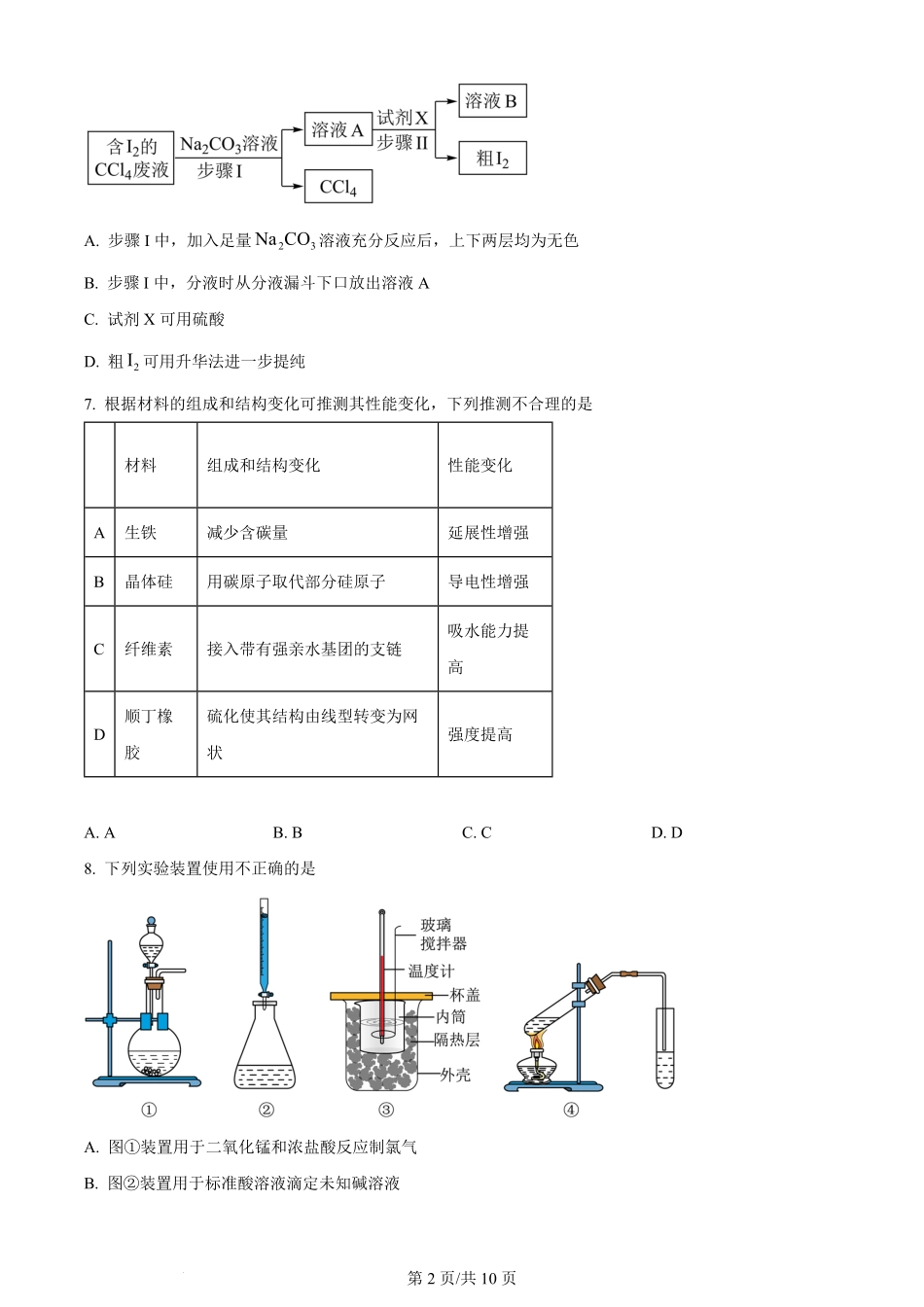 2024年高考化学试卷(浙江)(1月)(空白卷).pdf_第2页