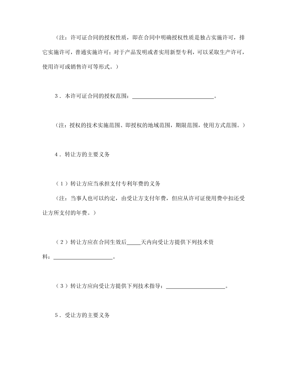 专利实施许可合同(3)转让方:法定代表人或负责人:受让方:法定代表人或负责人:依据《中华人民共和国合同法》的有关规定,经双方当事人协商一致,签订本合同。1.项目名称:。专利申请人:;专利权人:;申请...