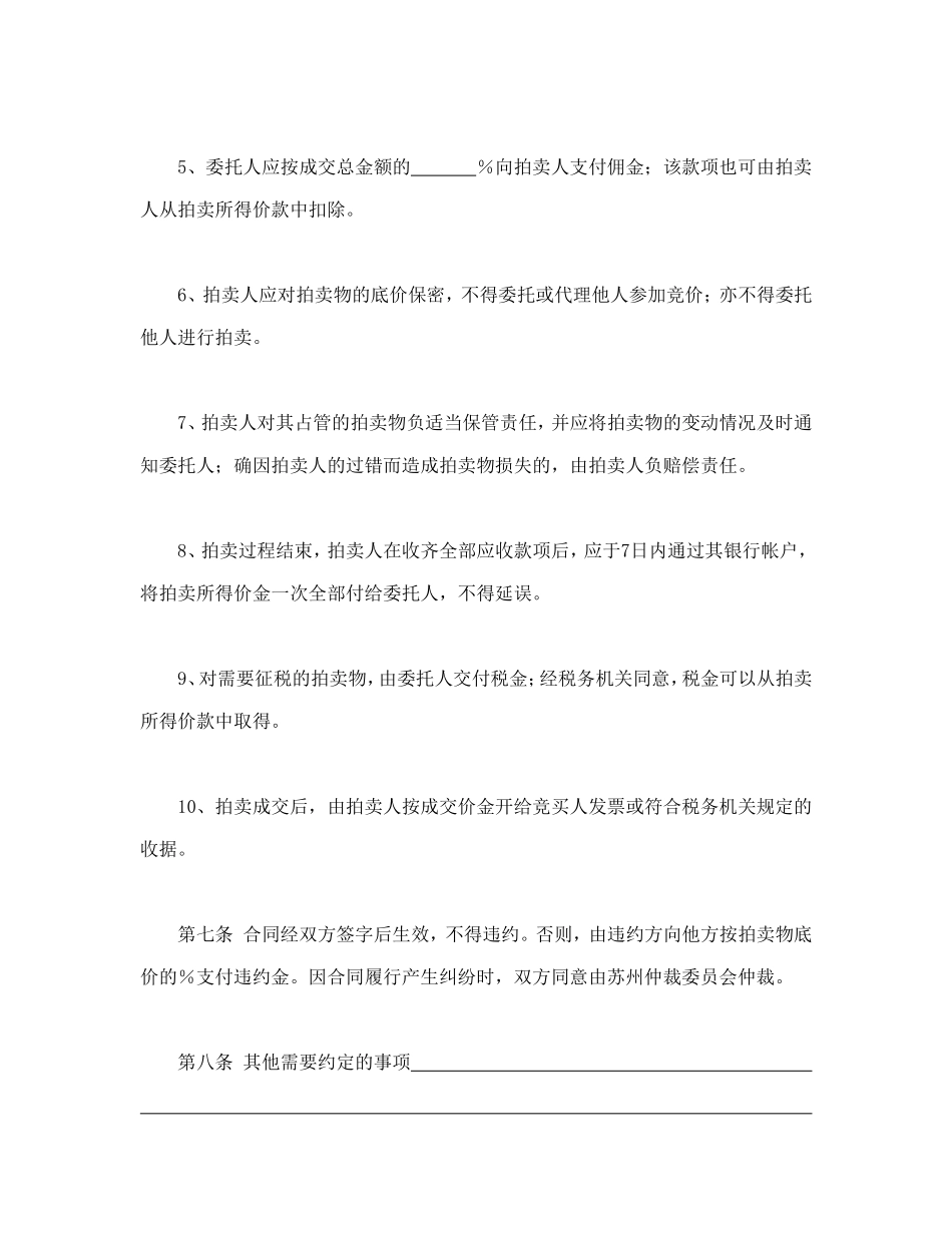 委托拍卖合同委托人:拍卖人:根据《中华人民共和国合同法》和《中华人民共和国拍卖法》和其他有关法规,双方经协商一致,签订本合同:第一条委托人愿就下述拍卖物委托拍卖人依法公开拍卖:1.拍卖物名称2.品种规...