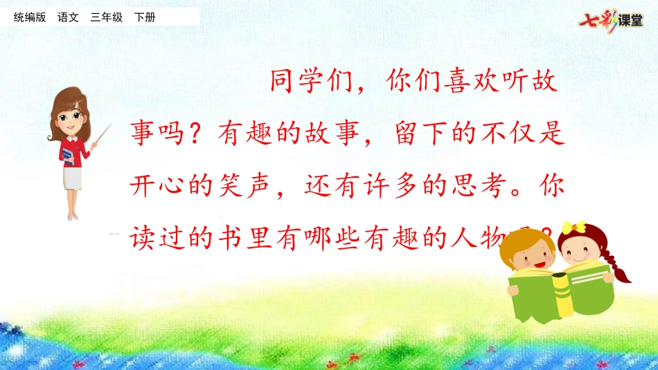 25慢性子裁缝和急性子顾客统编版语文三年级下册同学们,你们喜欢听故事吗?有趣的故事,留下的不仅是开心的笑声,还有许多的思考。你读过的书里有哪些有趣的人物吗?25慢性子裁缝和急性子顾客统编版语文三年级下...