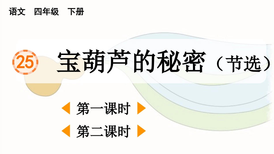 语文四年级下册宝葫芦的秘密(节选)25第一课时第二课时你知道这是什么吗?我们今天要学习的课文就和葫芦有关,它选自作家张天翼的童话《宝葫芦的秘密》。第一课时张天翼元定,笔名张无诤,祖籍湖南,出生于南京...