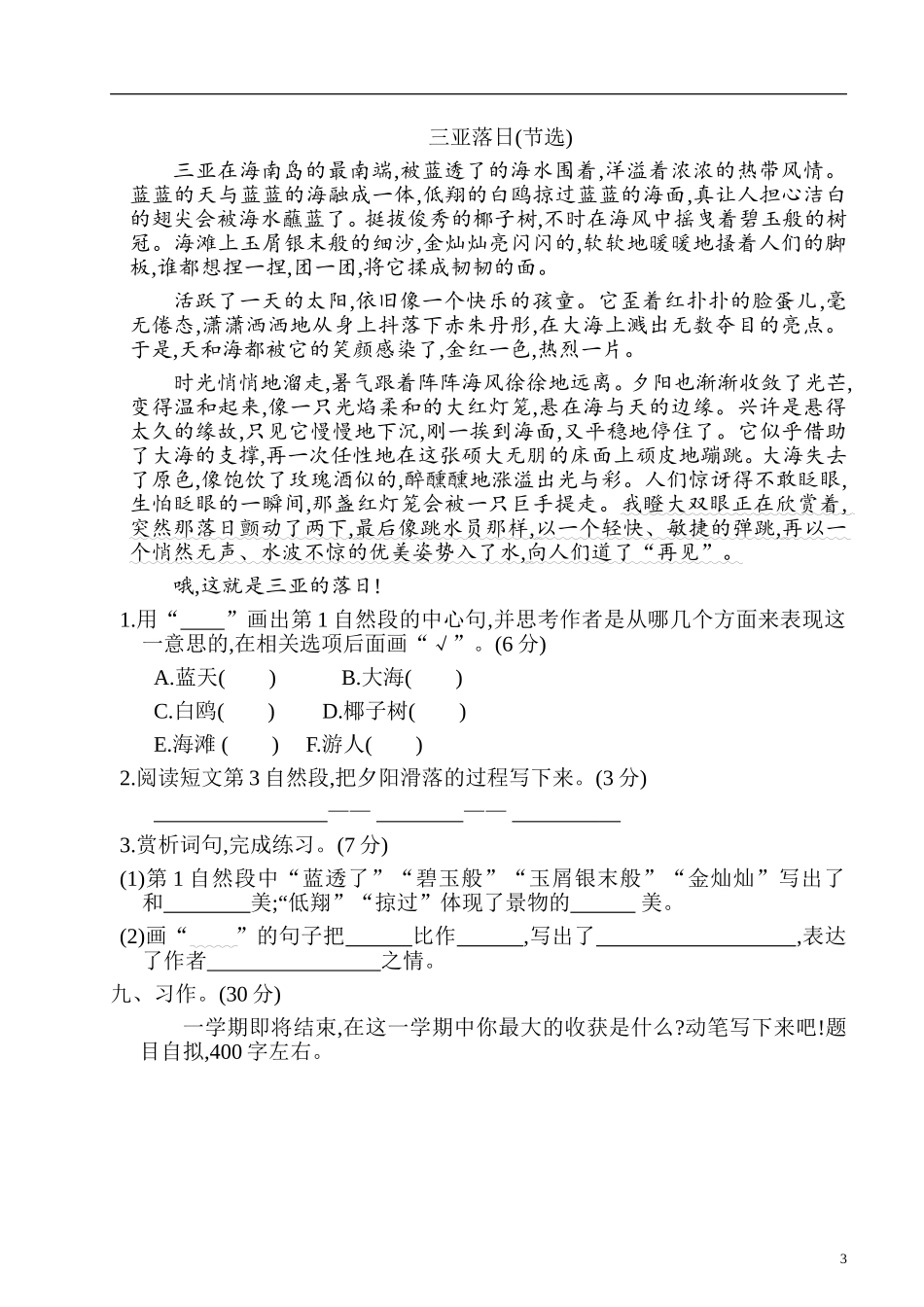 2020部编版语文五年级(下册)期末测试卷(有答案).doc_第3页
