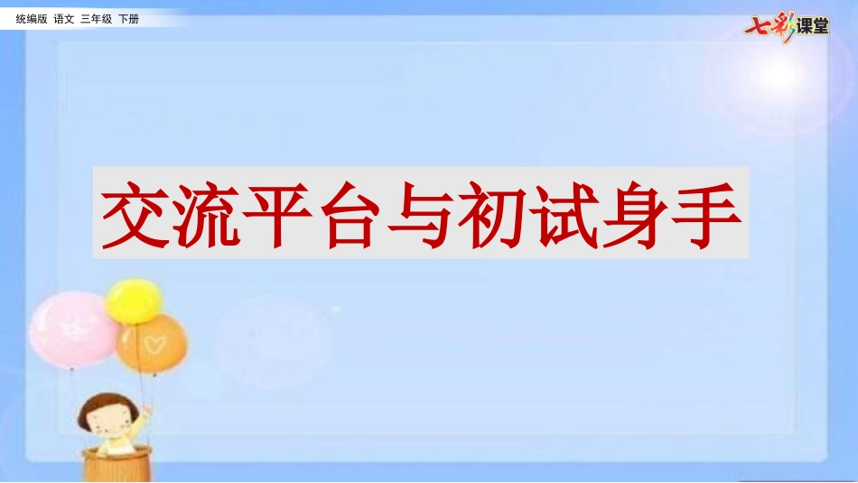 交流平台统编版语文三年级下册交流平台与初试身手交流平台交流平台交流平台交流平台《宇宙的另一边》雪日出石头交流平台《我变成了一棵树》交流平台1.文中的想象画面是凭空捏造出来的吗?2.与现实生活有何联系?3...